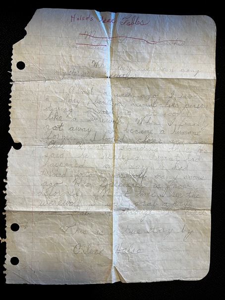 You can see the story here. The reason the paper is so crinkled is that Dale was not amused by my creative efforts. He wadded up my little masterpiece and threw it at me—always a critic.